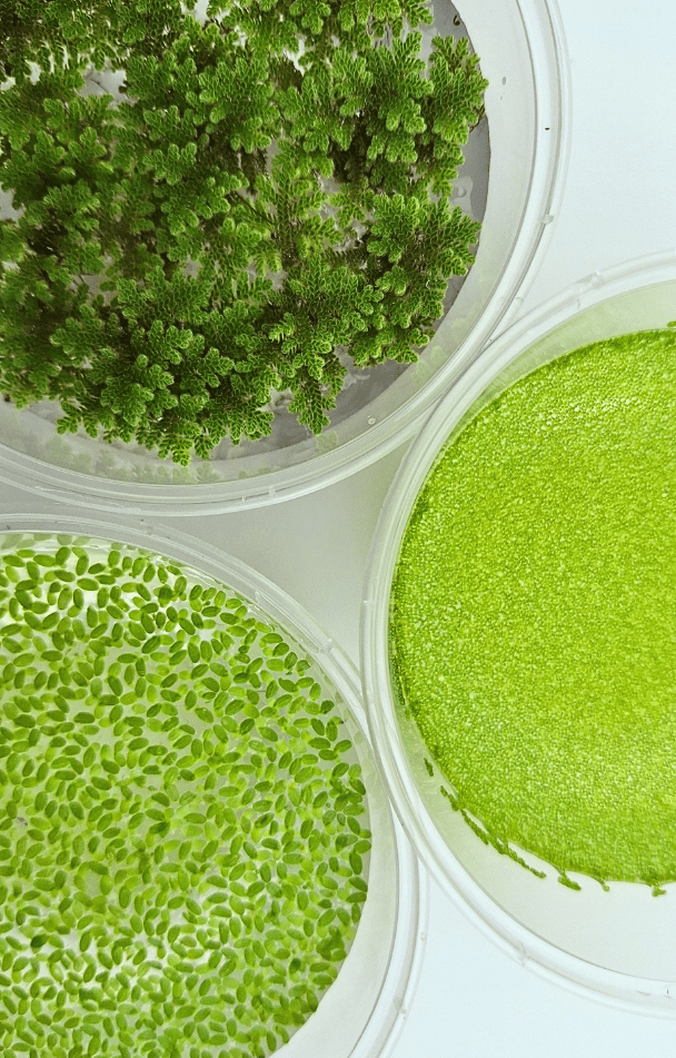 Kami menyediakan Azolla, Lemna, Wolffia, Spirodela & Landoltia sebagai bibit.